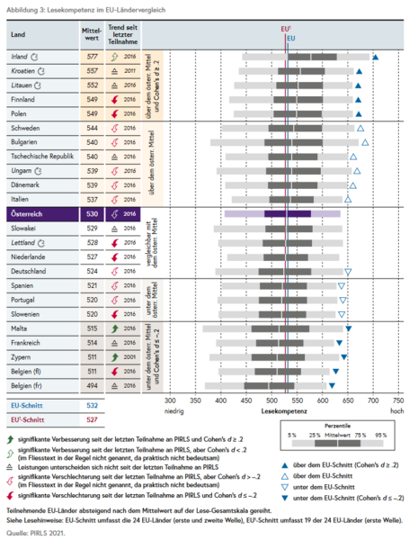 - Die Lesekompetenz österreichischer Viertklässler/innen liegt im internationalen Vergleich im oberen Mittelfeld.